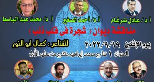 تقام بورشة الزيتون ندوة لمناقشة ديوان (شجرة في قلب ذئب) الصادر عن الهيئة المصرية العامة للكتاب برئاسة الدكتور هيثم الحاج علي، للشاعر كمال أبوالنور، وذلك في الساعة السابعة مساء يوم الإثنين الموافق 19/9/2022. يناقش الديوان الشعراء النقاد أسامة حداد، أسامة جاد، خالد حسان، ويقدم الندوة الشاعر محمود خيرالله.