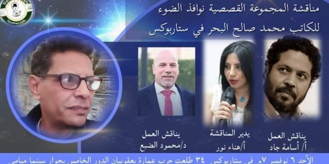 يقام في السابعة من مساء الأحد المقبل 6 نوفمبر ندوة لمناقشة المجموعة القصصية “نوافذ الضوء” للكاتب محمد صالح البحر، والصادرة عن الهيئة المصرية العامة للكتاب برئاسة الدكتور أحمد بهي الدين، وذلك بعمارة يعقوبيان بشارع طلعت حرب. يناقش المجموعة الناقد الدكتور محمود الضبع، الشاعر والناقد أسامة جاد، وتدير الندوة الأديبة هناء …