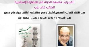 أكمل القراءة »توقيع ومناقشة كتاب “العمران.. فلسفة الحياة في الحضارة الإسلامية ” لخالد عزب