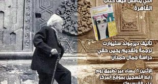 احتفالا بذكرى مولد الكاتب الكبير يحيى حقي وبالقاهرة عاصمة ثقافية للعالم الإسلامي، يقيم المركز القومي للترجمة برئاسة الدكتورة كرمة سامي ندوة “قاهرة يحيى حقي.. طبوجرافيا القلب”. تتضمن الندوة مناقشة كتاب القاهرة ل دزموند ستيوارت ترجمة يحيى حقي، دراسة جمال حمدان وذلك يوم الإثنين المقبل الموافق ١٧ يناير في تمام السادسة …
