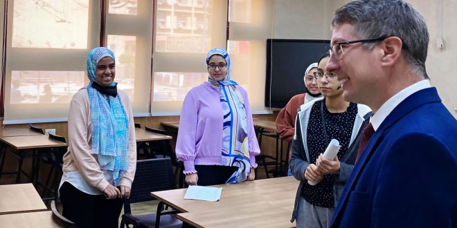 استقبلت الدكتورة سلوى رشاد عميد كلية الألسن بجامعة عين شمس، مراد جاتين مدير المراكز الثقافية الروسية فى مصر، بحضور الدكتور “أشرف عطية” وكيل الكلية لشئون الدراسات العليا والبحوث والدكتور “محمد نصر الجبالى” رئيس قسم اللغة الروسية بالكلية، حيث دار النقاش حول خطط التعاون والمشروعات المستقبلية المشتركة. من جانبها رحبت عميدة …