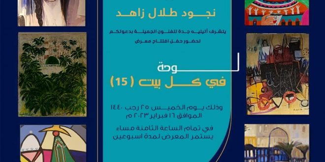 يفتتح أتيليه جدة للفنون، الخميس المقبل، معرض “لوحة في كل بيت” بنسخته الخامسة عشرة على التوالي، برعاية السيدة نجود طلال زاهد، ويستمر لمدة شهر كامل بمشاركة مصرية كبرى. أبرز المشاركين المصريين من الفنانين التشكيليين، شاكر المعداوي، عماد رزق، مصطفى رحمة، عماد إبراهيم، مرفت شاذلي، عصمت داوستاشي، محسن شعلان، عبدالوهاب عبدالمحسن، …