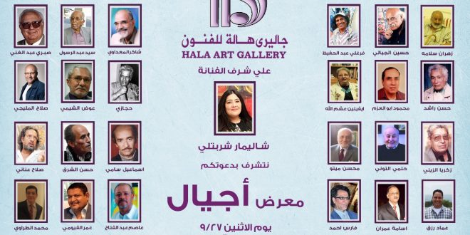 تفتتح الفنانة التشكيلية السعودية شاليمار شربتلي، فى السابعة من مساء الإثنين المقبل 27 سبتمبر، معرض “أجيال” بجاليري هالة بمدينة نصر. المعرض يضم أعمال نخبة من كبار الفنانين التشكيليين، من الراحلين والمعاصرين، ويستمر لمدة أسبوعين، بحسب تصريح الفنانة هالة عبد القادر مديرة الجاليري. من بين الفنانين الذين تتواجد أعمالهم: إنجي أفلاطون …