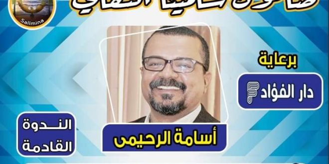 يقيم «صالون سالمينا الثقافي» بمدينة نصر ندوة لمناقشة كتاب «طباطيب العبر» لأسامة الرحيمي، في السابعة من مساء الأحد 28 أغسطس الجاري. يقام الصالون برعاية دار الفؤاد. عنوان الصالون : شارع عباس العقاد ـ برج سانت فاتيما ـ الدور التاسع ـ أمام جنينة مول.