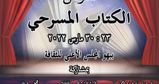 تحت رعاية الدكتورة إيناس عبد الدايم وزيرة الثقافة؛ والدكتور هشام عزمي الأمين العام للمجلس الأعلى للثقافة؛ تنظم لجنة المسرح بالمجلس الأعلى للثقافة ومقررها المخرج عصام السيد ، افتتاح معرض الكتاب المسرحي. وذلك ضمن إطار الاحتفال باليوم العالمي للمسرح، وذلك في تمام الساعة الحادية عشرة صباح الأربعاء 23 مارس الحالي؛ ببهو …