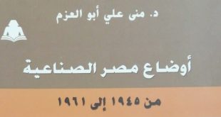 صدر عن الهيئة المصرية العامة للكتاب، كتاب بعنوان “أوضاع مصر الصناعية.. من 1945 إلى 1961″، تأليف الدكتورة منى علي أبو العزم. الكتاب يلقي الضوء على أوضاع مصر الصناعية وكل ما يتعلق بالصناعة وتنظيمها في الفترة الواقعة بين عام 1945 و1961، حيث تتناول أبو العزم بطريقة السرد التاريخي، أهمية الصناعة في تنمية الدولة، …