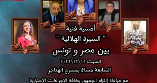 يقيم المركز القومي للمسرح والموسيقى والفنون الشعبية برئاسة الفنان القدير ياسر صادق، أمسية فنية للسيرة الهلالية بين مصر وتونس. تحيي الأمسية المطربة فاطمة عادل؛ بمصاحبة الفرقة الموسيقية للمركز القومي للمسرح والموسيقى والفنون الشعبية. فيما يلقي الفنان أيمن عبدالرحمن كلمة تتناول “السيرة الهلالية بتنويعاتها” و”الهلاليون بين مصر وتونس”؛ إعداد: د. محمد …