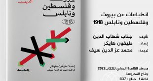 كتبت – آلاء حسن يصدر قريبا عن مركز المحروسة للنشر، كتاب «انطباعات عن بيروت وفلسطين ونابلس 1918» للأديب والكاتب التركي جناب شهاب الدين، وإعداد طايفون هيكر، وترجمة محمد عز الدين سيف، وتصميم الغلاف للفنان عثمان ستو، ومن المقرر أن يتواجد بجناح المركز (قاعة 1 – B36) بمعرض القاهرة الدولي للكتاب …