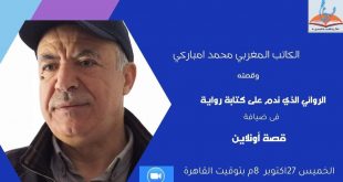 يستضيف موقع صدى ذاكرة القصة المصرية، الكاتب المغربي محمد مباركي، لمناقشة قصته “الروائي الذي ندم على كتابة رواية”، وذلك  في الثامنة مساء الخميس المقبل 27 أكتوبر، على تطبيق زوم. يناقش القصة الناقد والكاتب الكبير سيد الوكيل، الناقدة والكاتبة نيفين ياسين، وعدد من النقاد والمبدعين. يذكر أن محمد مباركي قاص وروائي …