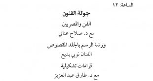 محور جولة الفنون ضمن فعاليات معرض الكتاب في دورته الـ52 على المنصة الإلكترونية للمعرض ويتضمن برنامج الفن والمصريين وورشة لتعليم الرسم بالجلد المقصوص وقراءات تشكيلية. تتوفر الفعاليات بمجرد بثها على المنصة الإلكترونية للمعرض. الجزء الأول (الفن والمصريين) الجزء الثاني (ورشة الرسم بالجلد المقصوص) الجزء الثالث (قراءات تشكيلية) الجزء الرابع …
