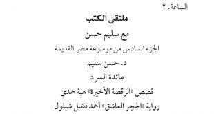 ملتقى الكتب ضمن فعاليات معرض الكتاب في دورته الـ52 على المنصة الإلكترونية للمعرض ويتضمن الجزء السادس من موسوعة مصر القديمة ومائدة السرد