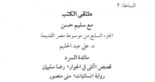 محور ملتقى الكتب ضمن فعاليات معرض الكتاب في دورته الـ52 على المنصة الإلكترونية للمعرض ويتضمن الجزء السابع من موسوعة مصر القديمة ومائدة السرد